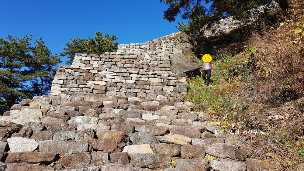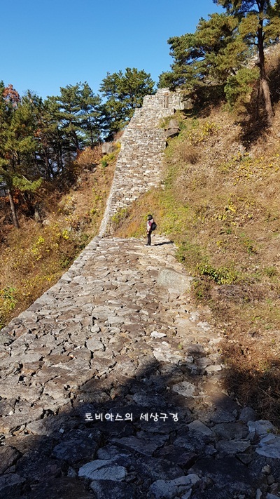 성벽 경사가 제법 가팔라서 위험하다 싶은데 다행히 성벽 안쪽으로 길이 있습니다.