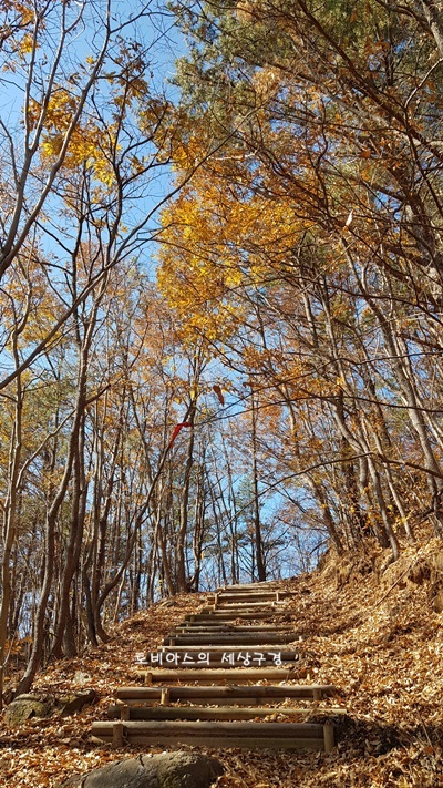 군데군데 나무계단도 있지만 사람들이 별로 안 다니는 듯 풀이 많이 덮여 있습니다.