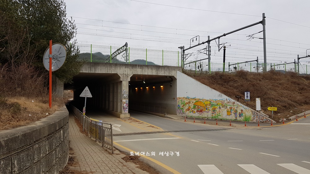 안내판에 표시된 대로 좌회전해서 굴다리를 지납니다.