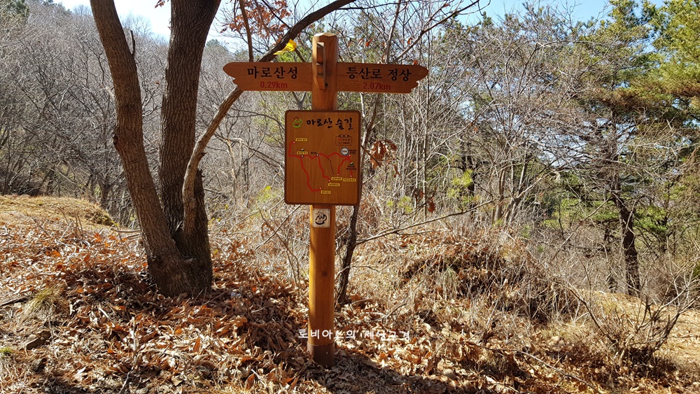 이정표대로 하면 마로산성과의 갈림길에서 등산로 정상까지 2.07km,
