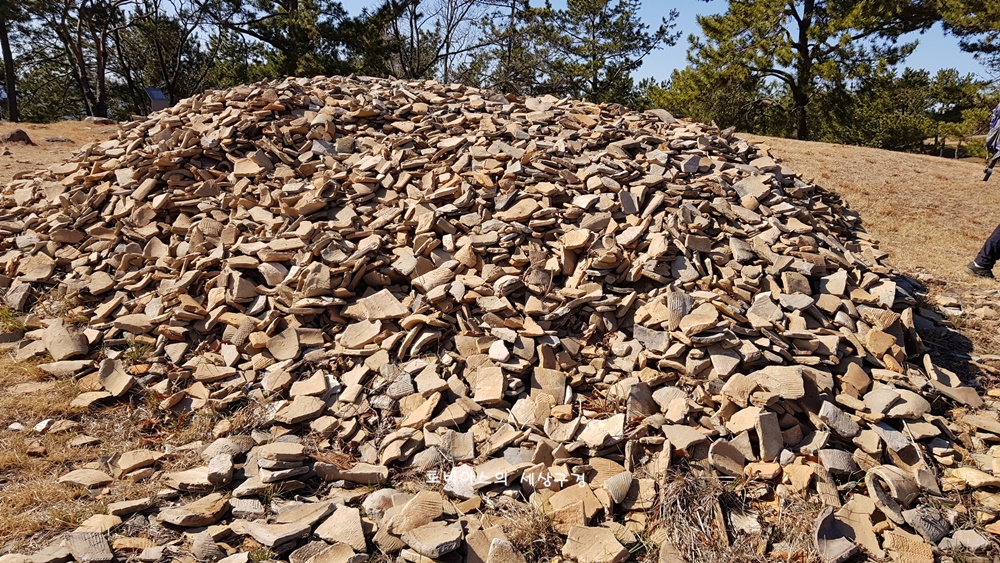 기와조각들이 아예 무더기로 쌓여 있습니다.