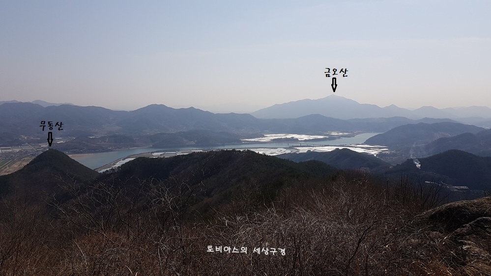 오른쪽으로 시선을 돌리니 멀리 하동 금오산이 보입니다.