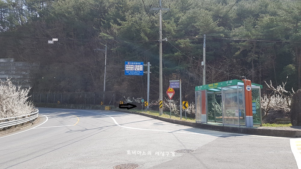 그런데 이 동네는 출발할 때 마을회관에서도 그렇고 이정표를 희한하게 세우네요.