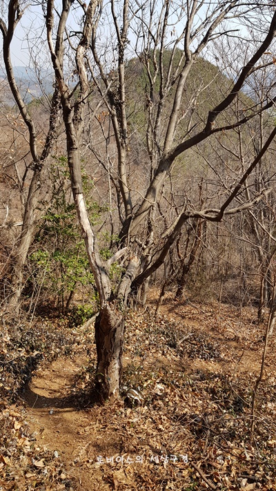무동산 정상을 향해 가는데 산 옆구리를 타고 왼쪽으로 갈라지는 길이 있습니다.