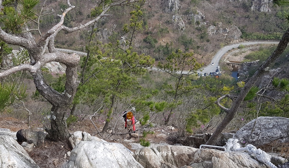 그리고 잠시후 나타난 가파른 바위와 그 바위에 설치해 놓은 시설물들.
