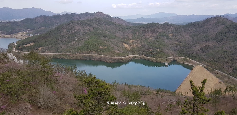 만덕산은 까마득히 멀어 보이고, 봉황저수지도 작게 보입니다.