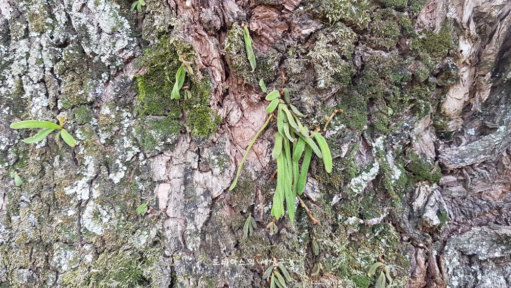 오래된 왕버들 줄기에서 싹을 틔운 이것은 석곡인 듯