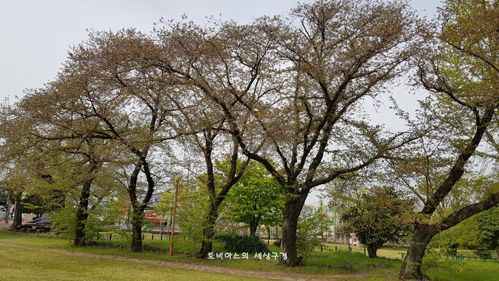 그 옆으로 벚나무들이 줄지어 있습니다.