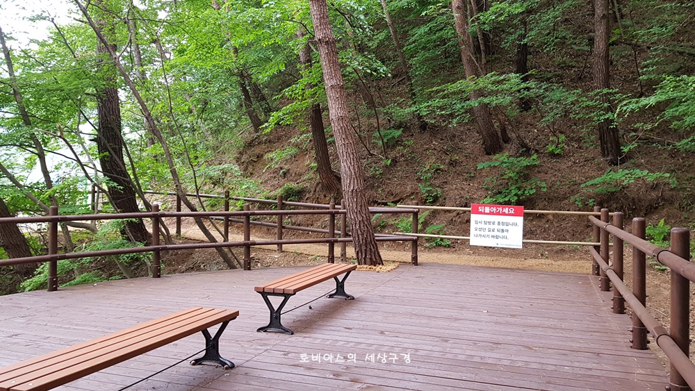임시개방이라는데 어쨌든 저수지를 끼고 산책길이 이어집니다.