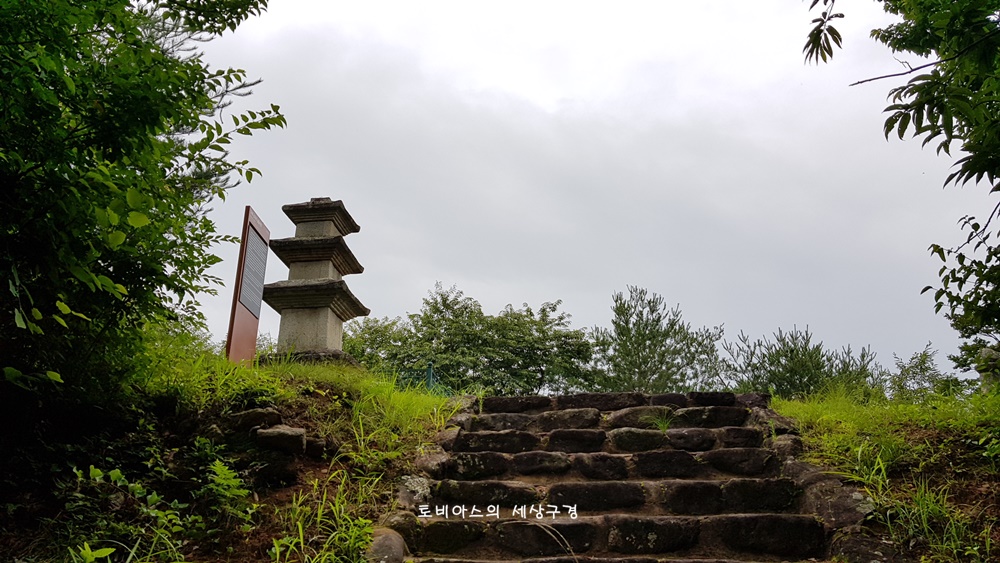 그 위로 올라가는 계단이 있습니다. 그리고 모습을 보이는 논곡리 삼층석탑!