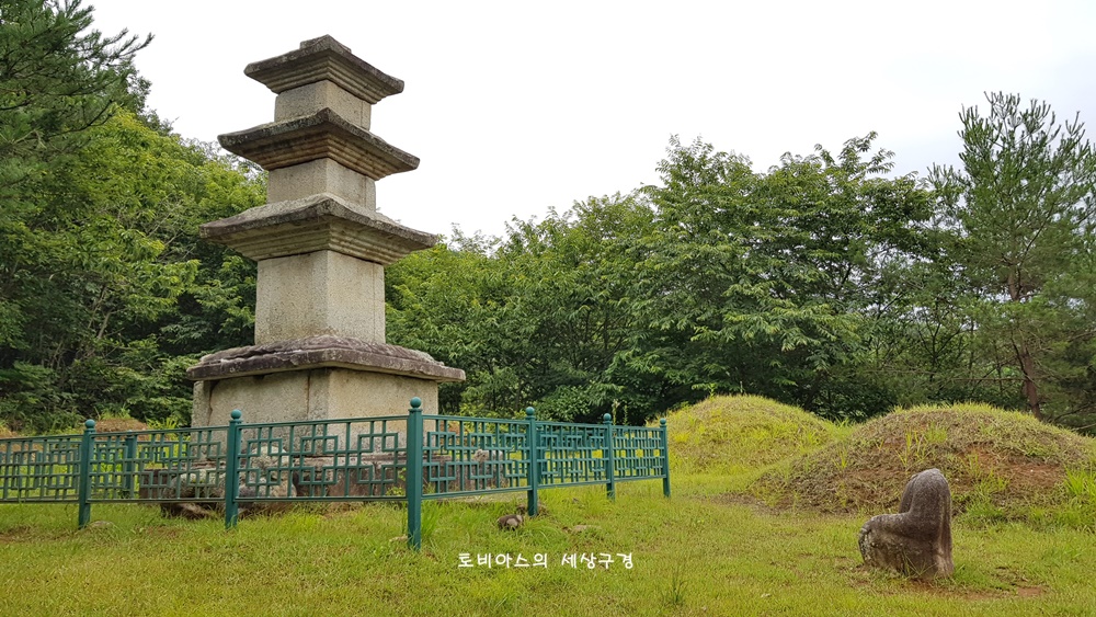 계단을 올라가니 논곡리 삼층석탑 주변에 죄 묘가 만들어져 있습니다.
