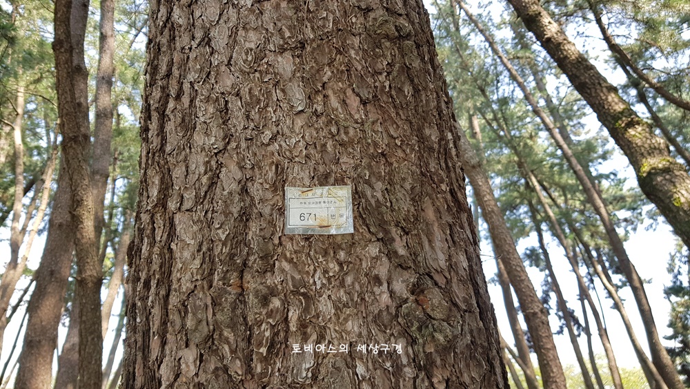 소나무숲 건너로 주차장이 보이는 걸 보니 입구 쪽에 다 왔습니다.
