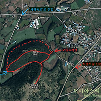 붉은 화살표가 오름 표지판 있는 곳이고, 붉게 표시된 길이 이번에 다녀온 길입니다.